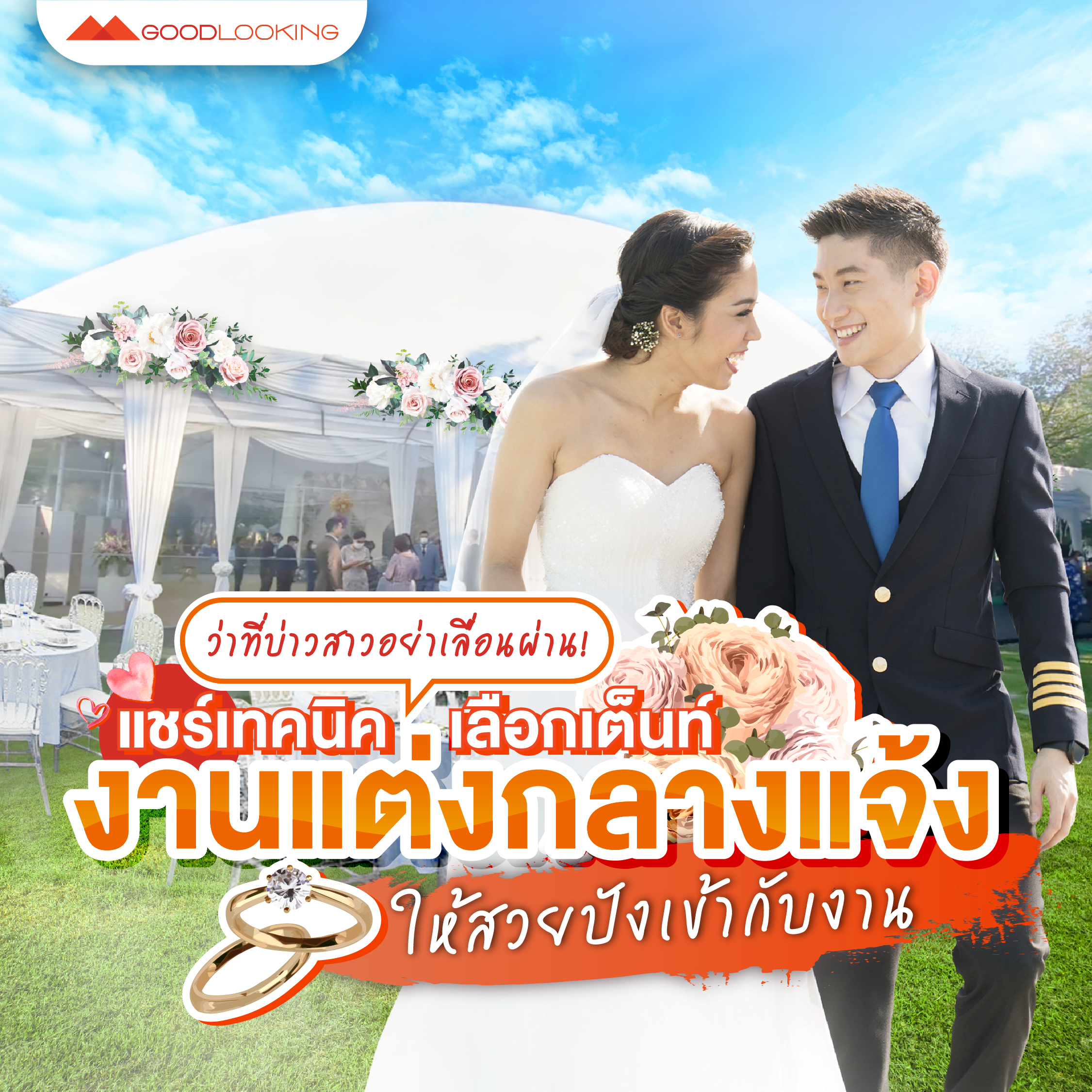 วันนี้ goodlooking จะมาแชร์เทคนิคดี ๆ ไอเดียเจ๋ง ๆ ในการเลือกเต็นท์งานแต่งงาน ที่ว่าที่บ่าวสาวจำเป็นต้องรู้ และออร์แกไนซ์จำเป็นต้องจด มาดูกันเลย!